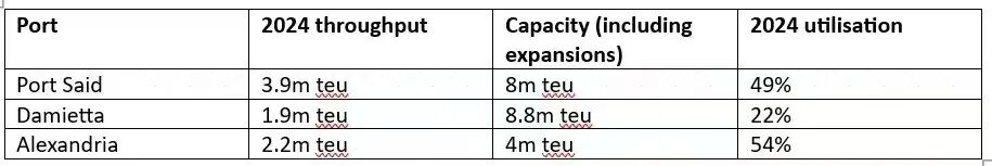 不过,正如近期有消息指出的,若 2025 年苏伊士运河航运恢复,该码头或将迎来运量增长的黄金机遇。若欧洲地中海港口如预期般出现集装箱拥堵,达米埃塔新码头的新增运力可能会迎来迫切需求。