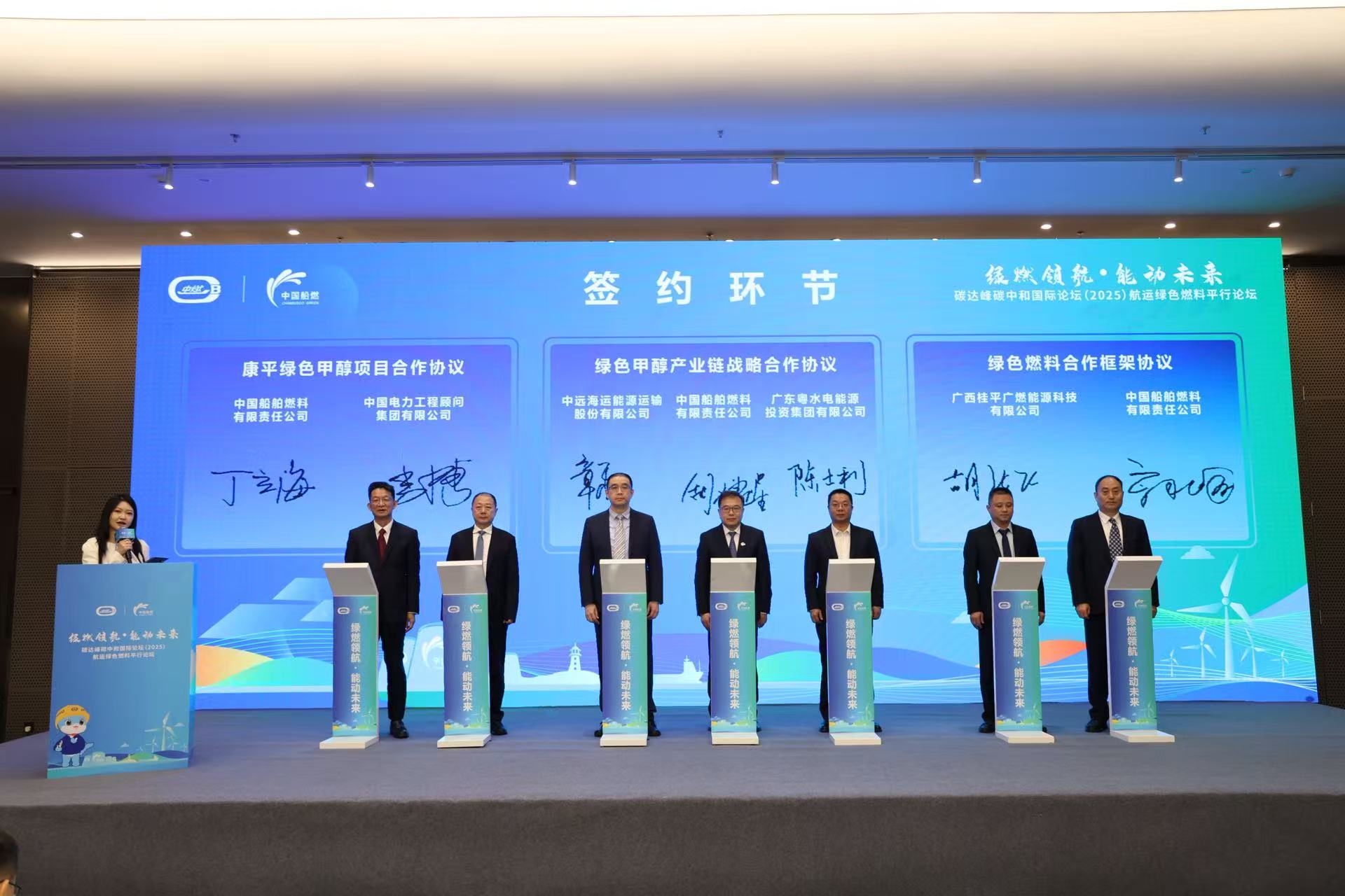 论坛设置主题演讲与沙龙环节,行业专家围绕碳中和战略、国际脱碳政策、船舶工业发展、替代燃料需求等议题进行深度分享。在签约环节中,中国船燃分别与中远海运能源、粤水电、广燃集团、中电工程等企业达成合作,进一步拓展了原料供应,深化了航运服务协同,成为论坛一大亮点。