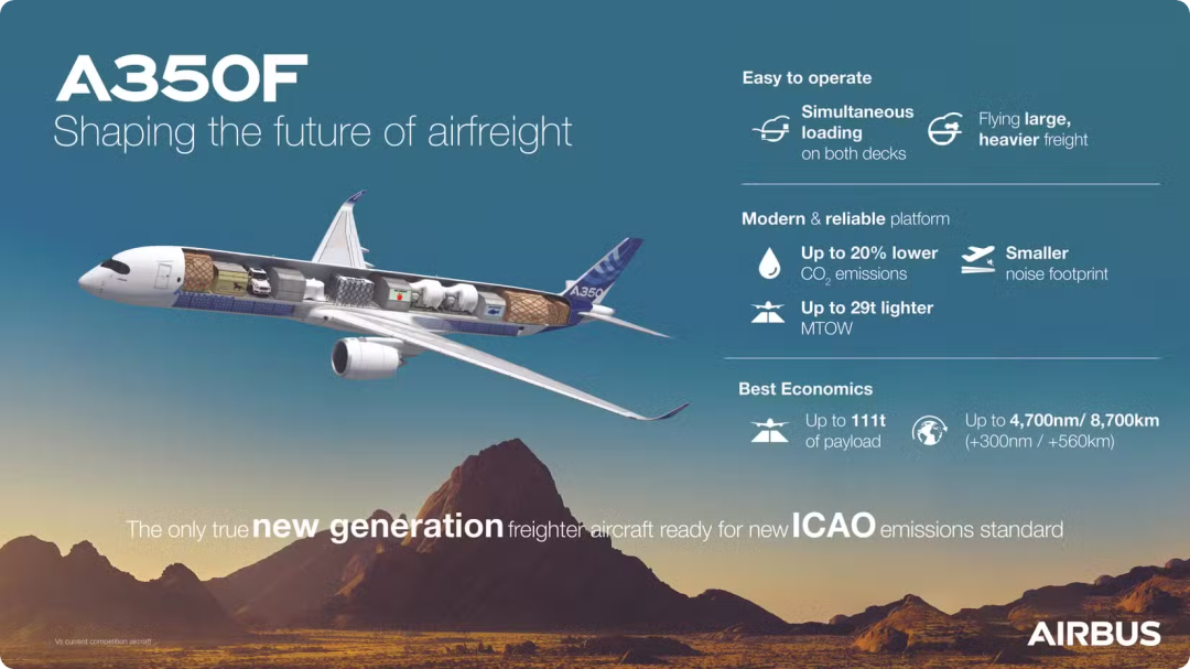 航空公司对货机的需求日益多样化和精细化,承载更重、更多样化的货物,灵活适应贸易路线变化以及现代数字化运营,已成为货机设计的核心诉求。空客A350F货机在性能方面的卓越表现,无疑为满足这些需求提供了坚实有力的支撑。在载货量方面,A350F货机提供109吨和111吨两种载重版本供客户选择,而且制造商明确表示这仅是结构能力的起点,未来还将进一步提升性能。这种不断进取的精神,展现了空客对技术创新的执着追求。货舱空间的设计更是一大亮点,主货舱可容纳30个货板,下层货舱还能再容纳12个,可用容积达717立方米,与波音747 - 400货机不相上下。这一数据背后,是空客对空间利用的极致优化,为航空公司提供了更大的货物装载灵活性。新型电动货舱门的配备,175英寸的宽度便于装载大型现代发动机,货舱地板的加固以及18个货板位置可承受最高运行重量,这些细节设计无不体现出空客对航空公司实际运营需求的深入洞察。在货运运营效率至上的当下,这些设计能够有效加快货物周转速度,减少停机时间,提高航空公司的运营效益。