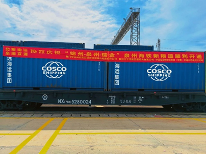 近日,在中远海控旗下子公司多方协作下开通了 "锦州 — 泉州 — 瑞金" 北粮南运海铁通道,首列 24 个 20GP集装箱顺利发运,标志着一条高效、经济、可靠的跨区域粮运新动脉全面启用。这条通道创新性实现东北粮食从锦州港海运至泉州港,再经铁路转运至江西瑞金,彻底打通北粮南运 "最后一公里"。构建起了高效协同的“一站式”粮运体系。