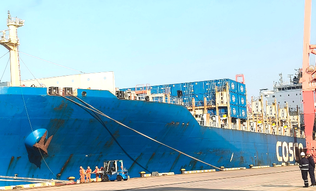 此次运输业务开辟了连云港“铁路箱下水”的多式联运新路径:货物在连云港港装载铁路箱后,搭乘集运泛亚内贸船舶直达广西钦州港,随后无缝衔接铁路运输至广西南丹站,全程采用“一次委托、一单到底、一箱到底”的高效便捷服务模式。