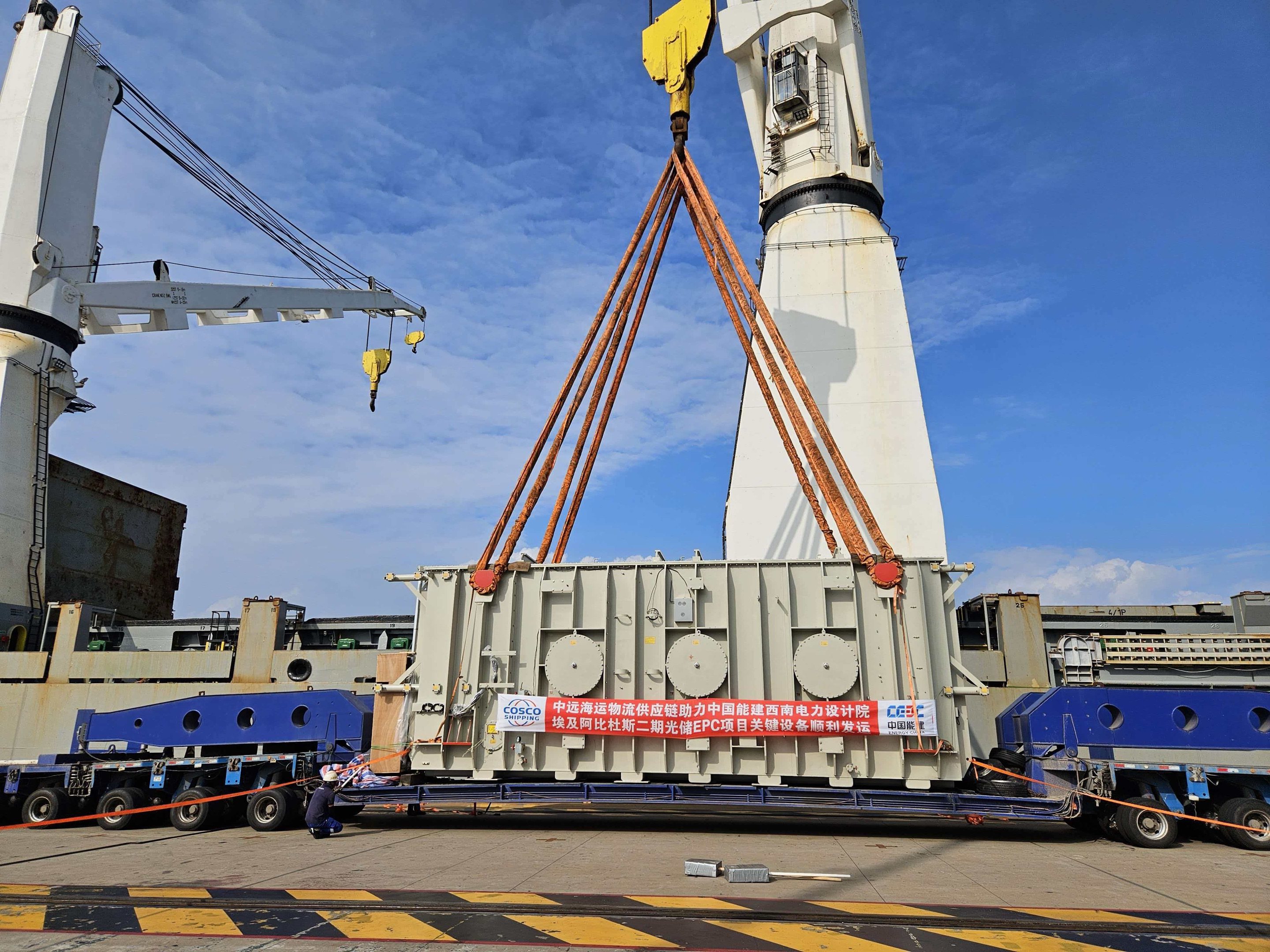 在中远海运物流供应链的全链攻坚下,埃及阿比杜斯二期光储项目的核心设备顺利就位,不仅创下当地长距离最重件运输新纪录,更让中远海运的运输方案在非洲沙漠中凸显价值。