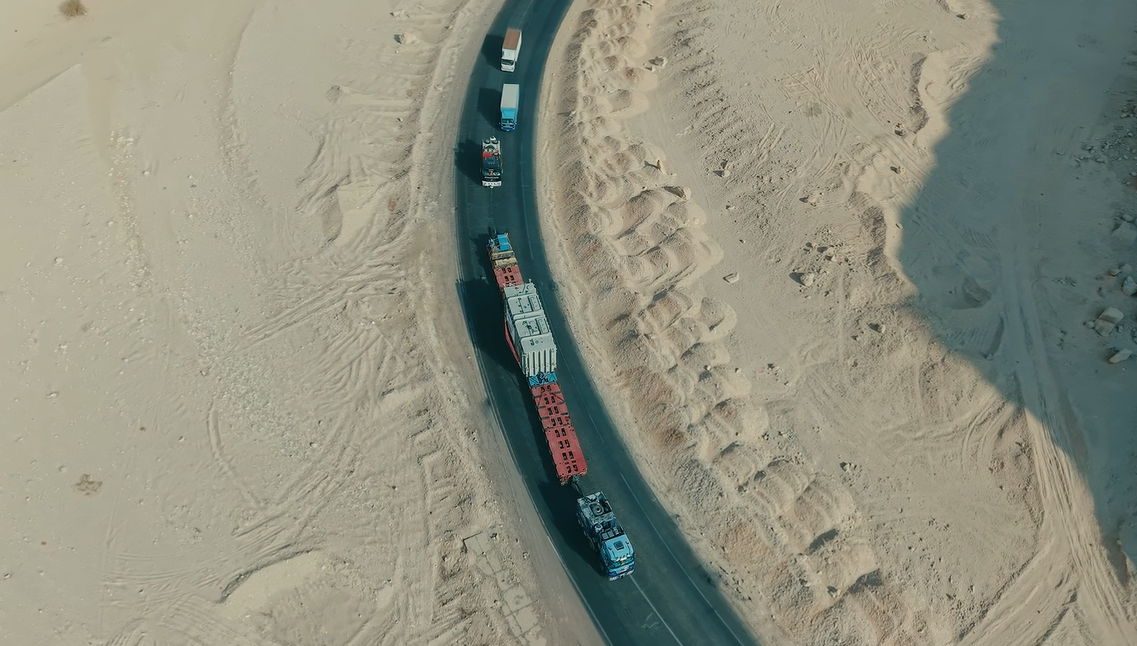 真正的挑战在陆运环节,面对跨距超1公里的尼罗河大桥,团队提前半年制定专项方案,邀请第三方机构反复检测验算,最终在深夜成功护送这个“巨无霸”平稳通行。数百公里的撒哈拉沙漠无人区更是考验重重,风沙、高温与复杂路况交织,全程凭借精准调度与专业保障实现安全可控。