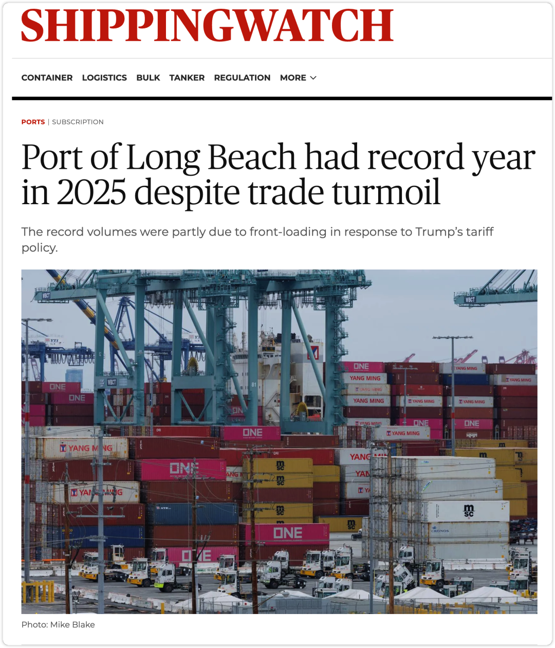 1. 长滩港2025年创纪录表现 贸易政策动荡下仍实现高增长