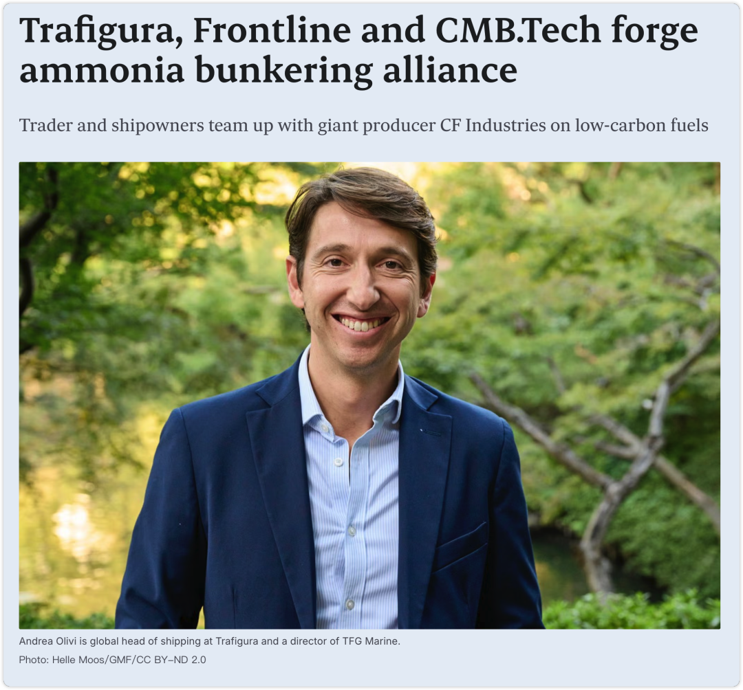 3. Trafigura、Frontline与CMB.Tech联手推进低碳氨燃料加注