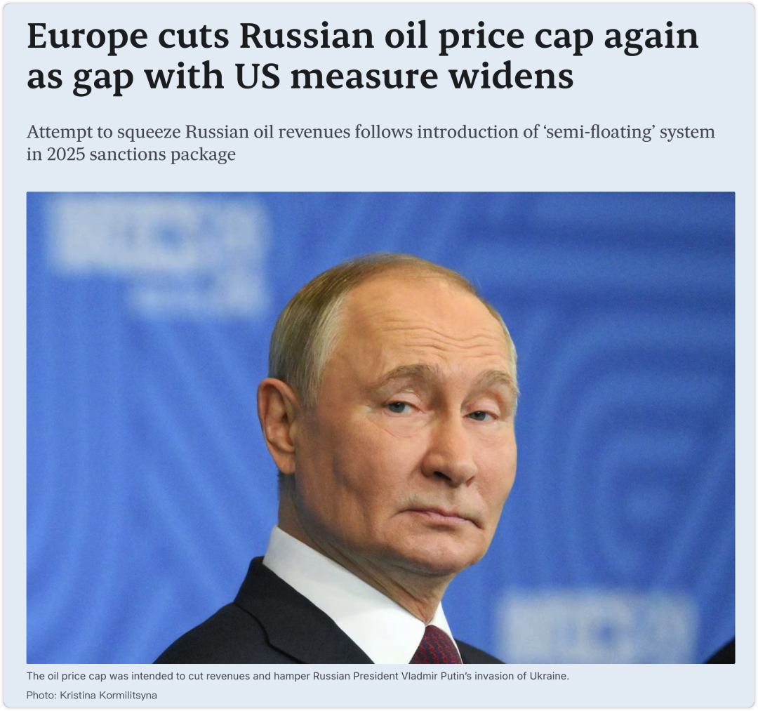 4. 欧盟再次下调俄罗斯原油价格上限 与美国政策分歧加剧