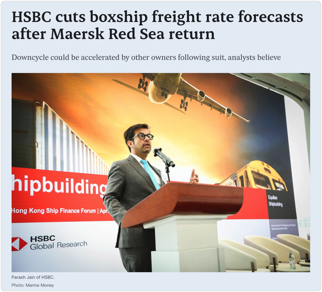 2、马士基红海回归引发连锁反应,汇丰大幅下调集装箱运价预测