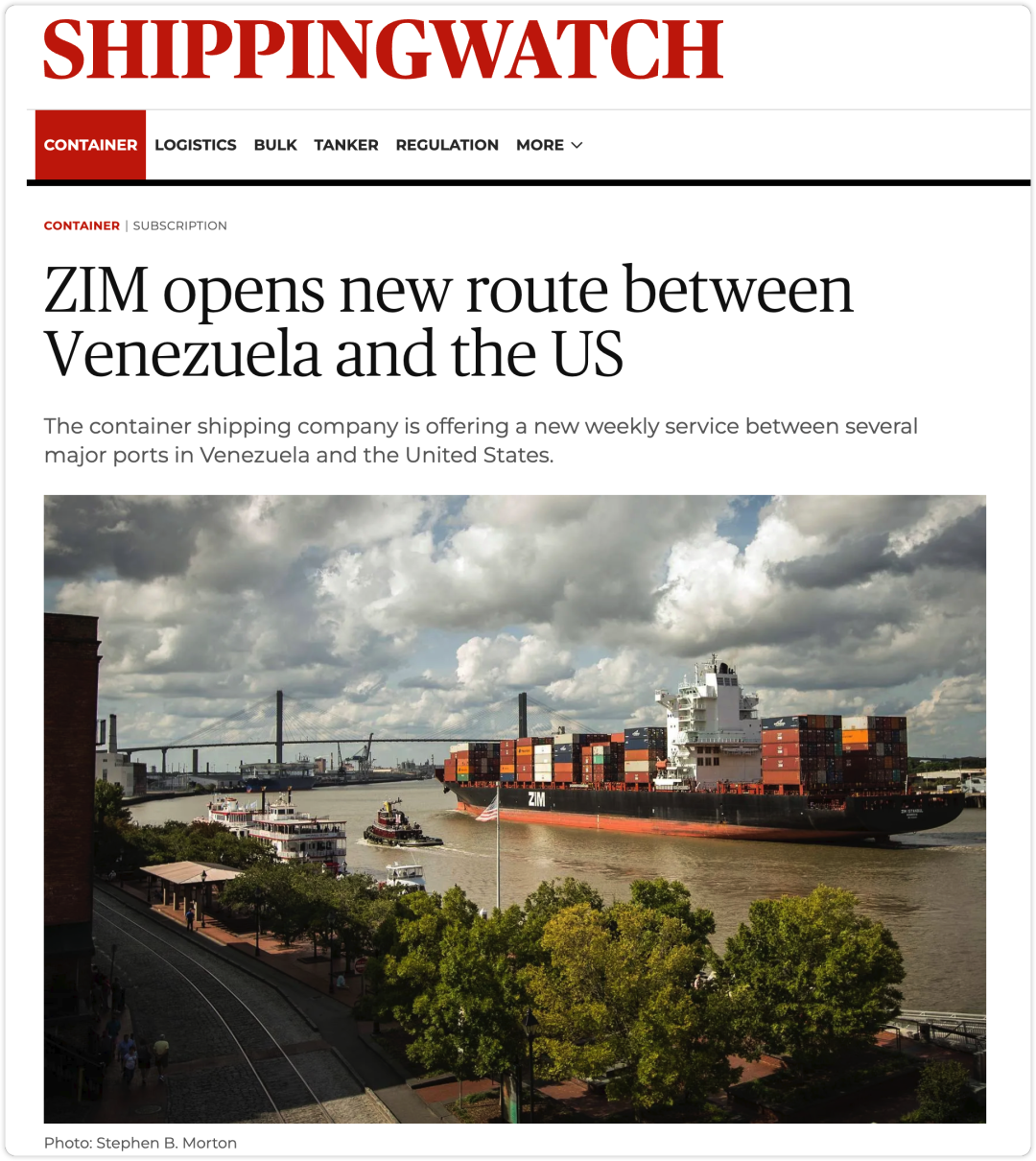 根据该帖子,这条路线的运输时间为 11 至 19 天,具体取决于涉及哪些美国港口。鉴于美国逮捕了委内瑞拉总统尼古拉斯·马杜罗,ZIM似乎正在关注委内瑞拉的新商机。他目前被关押在美国等待审判,而特朗普政府正在努力获取委内瑞拉的石油资源。