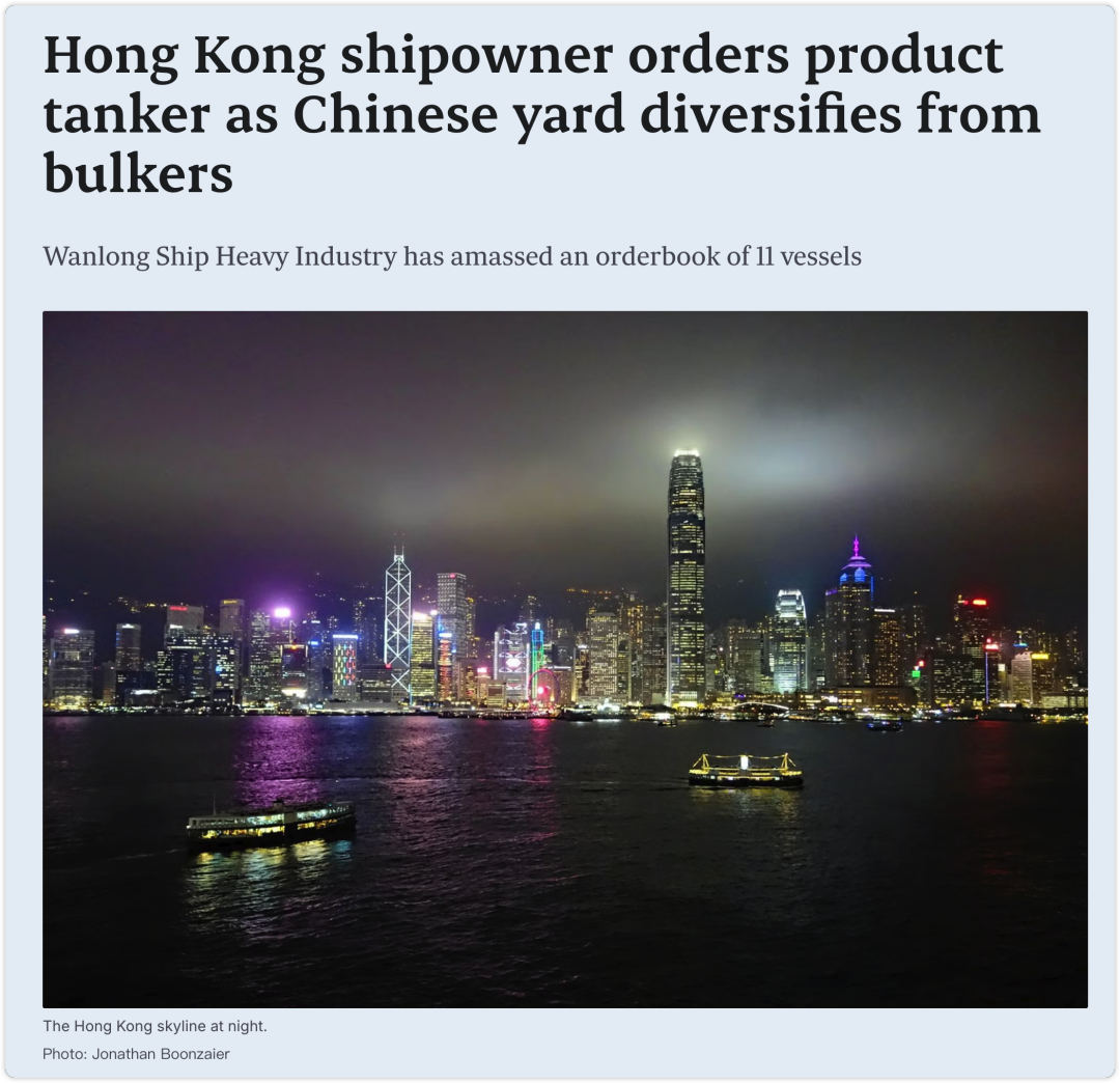 5. 香港新船东在中国订造LR2油轮,万隆重工订单簿达11艘