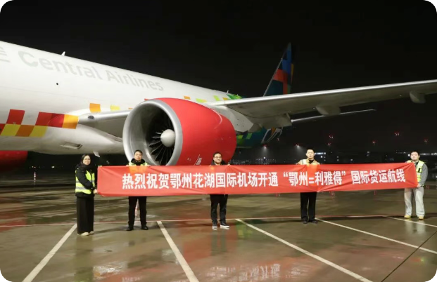 “鄂州=利雅得”航线为定期货运航线,计划每周4班,采用波音777-200F机型执飞,业载100吨,首趟出港航班装载的主要是跨境电商货物。沙特阿拉伯地处亚、非、欧三大洲交汇处,是中国在中东地区第一大贸易伙伴,中国长期位居沙特贸易伙伴首位。其首都利雅得位于中东腹地,是区域政治中心、商业和物流枢纽,该航线的开通将进一步拓宽中国与中东之间的航空物流通道。此前,花湖机场已联合顺丰航空、阿提哈德航空,开通鄂州至阿联酋阿布扎比的货运航线,并逐步加密至每周7班。此次新航线的开通,必将进一步深化中国中东经贸合作。据悉,1月30日花湖机场还将开通鄂州至赤道几内亚首都马拉博的国际货运航线,首次将航空货运航线网络延伸至非洲中西部,也是继非洲东北部埃塞俄比亚亚的斯亚贝巴之后、花湖机场直通非洲的第二条航空货运航线。