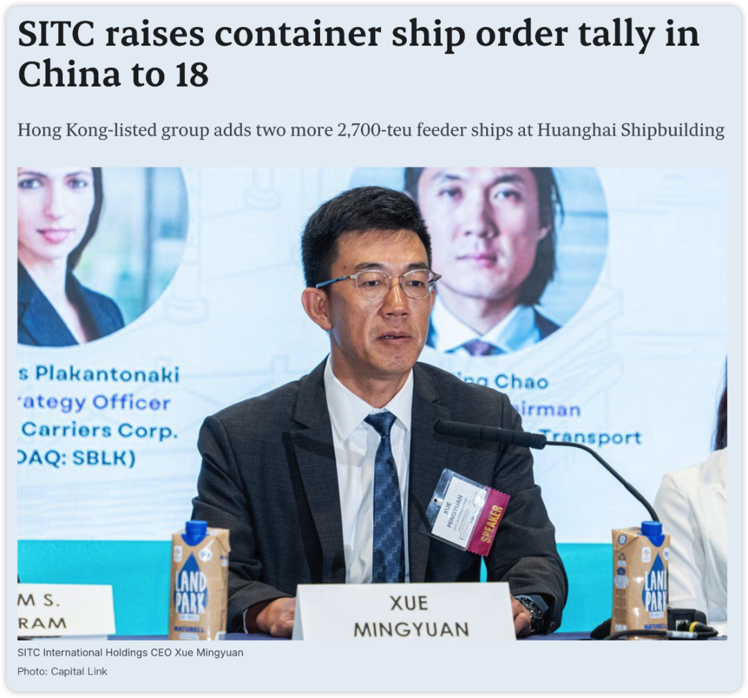 1. 海丰国际(SITC)在中国集装箱船订单总量增至18艘