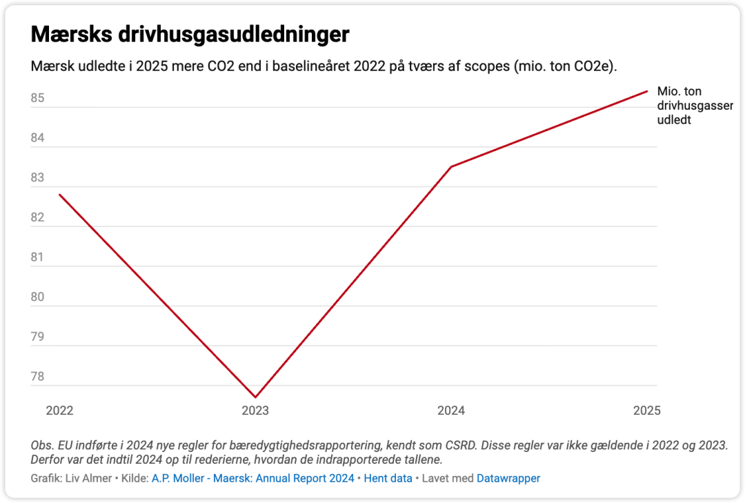 2025年,马士基总排放量不降反升,从2024年的8350万吨增至8540万吨,距离2030年5980万吨的目标越拉越远。原因显而易见:绕行好望角、新船交付、海洋燃料销售增长——这些都是外部强迫的“刚性碳排”。