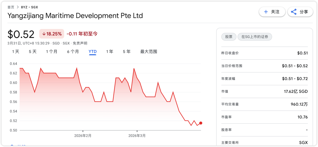 任元林长期以来一直是新加坡交易所的坚定支持者。其旗下三家公司:扬子江船业、扬子江金融以及扬子江海事发展(简称YZJ Maritime)均在新加坡上市。然而,近年来他对后两家公司的市值表现深感不满。他表示,两家公司均存在明显低估现象,市净率(P/B)低于1。以扬子江海事发展为例,其每股净资产超过0.60新加坡元,而当前股价仅在0.50新加坡元左右。“这明显是一只被低估的股票。”该公司于2025年中期从扬子江金融分拆上市,去年11月以每股0.60新加坡元的发行价挂牌,旨在打造覆盖整个海事价值链的投资平台,释放集团协同价值。