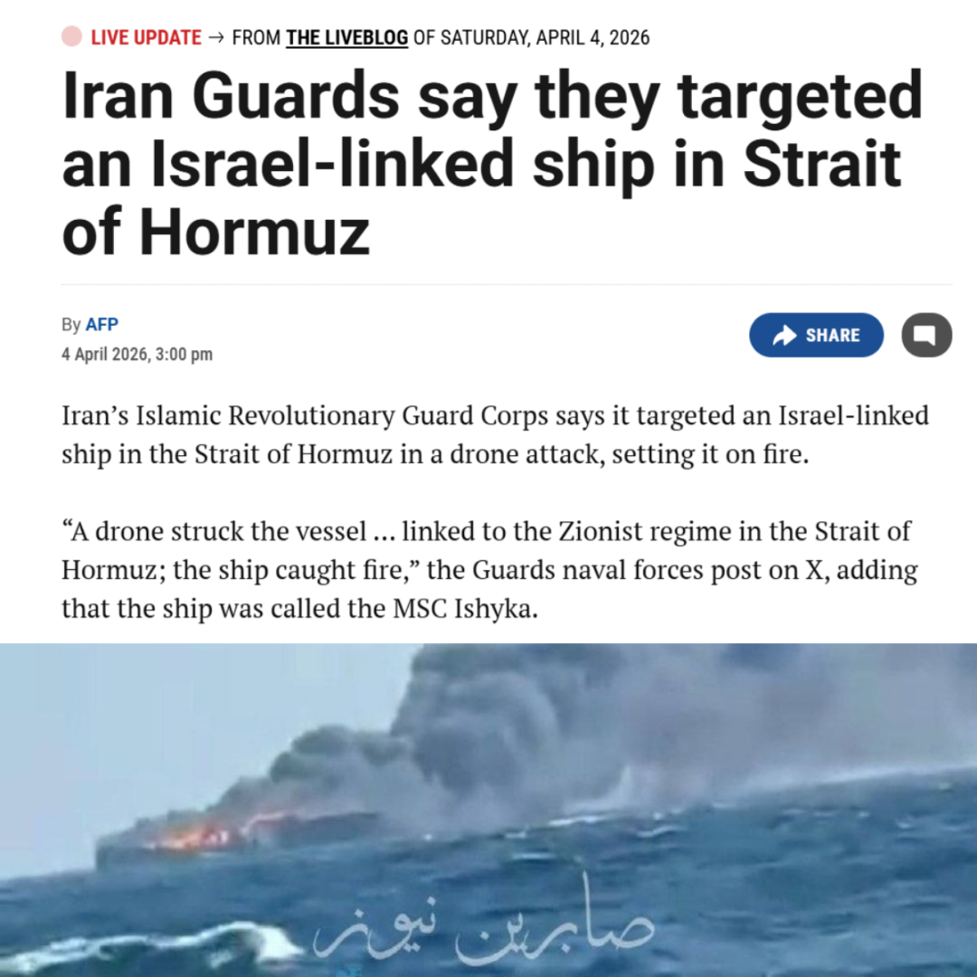 据伊朗伊斯兰革命卫队(IRGC)发布的消息,当地时间4月4日,其海军力量在霍尔木兹海峡对一艘被认定“与以色列存在关联”的集装箱船实施了无人机打击。伊朗国家媒体称,遭袭船舶为“MSC Ishyka”轮,袭击导致船体发生大范围火灾。
