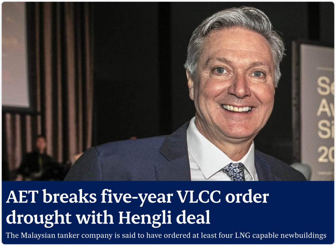 2、AET打破五年VLCC新船订单荒,斥资超5亿美元押注LNG双燃料船队