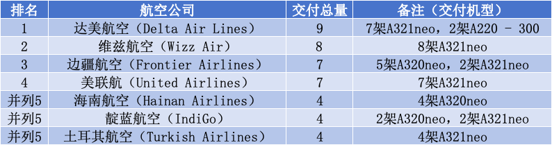 客户层面,Delta Air Lines是空客第一季度最大交付客户,共接收9架飞机(含7架A321neo和2架A220-300)。Delta已是A220全球最大运营商。Wizz Air接收8架A321neo。United Airlines和Frontier Airlines各接收7架。此外,本季度亮点交付包括:Egyptair接收两架A350-900,包括该机型首架交付,成为北非首家A350运营商。Japan Airlines(JAL)接收一架A350-900和一架A350-1000。Emirates接收三架A350-900,目前机队A350数量已达19架。