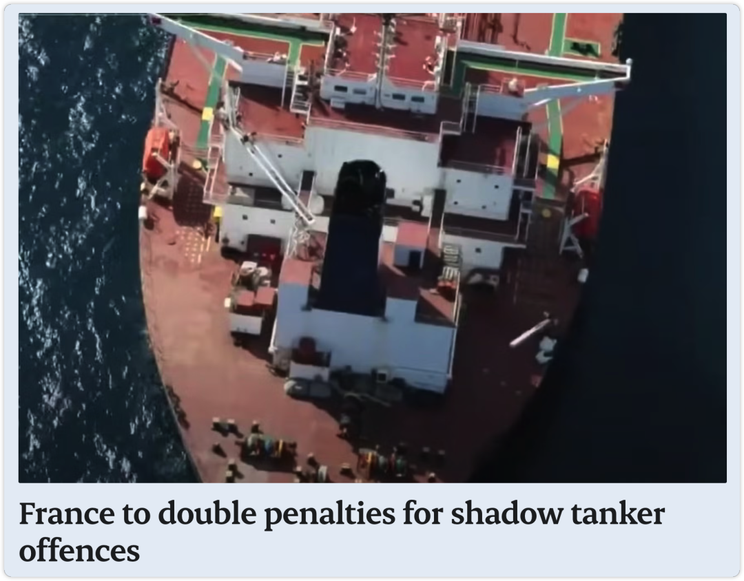 与此同时,法国议会拟于7月14日表决军事规划法修正案,将影子油轮违规罚款翻倍:最高可判2年监禁或30万欧元罚款,若危及登船法方人员则升至7年监禁及70万欧元。措施针对任何行使“控制或管理权”的人员,旨在进一步切断俄罗斯石油出口通道。