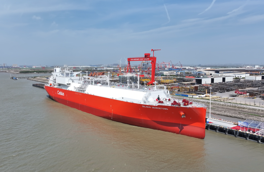 近日,我国自主设计建造的首艘18万立方米液化天然气(LNG)运输船“CELSIUS GEORGETOWN”号在招商船舶海门基地正式命名交付。