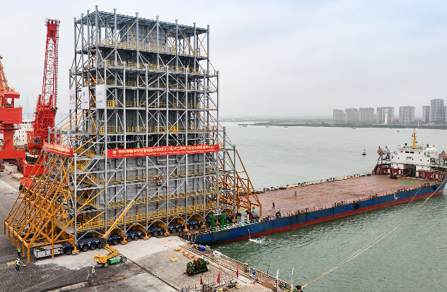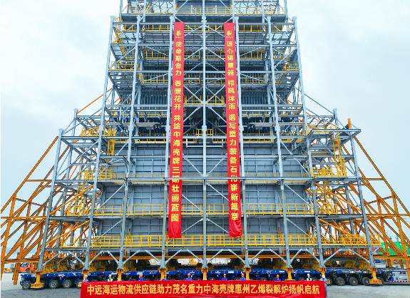 4月8日,经茂名外代专业操作,体量规模堪比15层楼高的“钢铁巨楼”——壳牌惠州三期乙烯项目首台乙烯裂解炉模块安全装船发运。这是茂名外代在超大型石化装备整体运输领域的又一次突破。