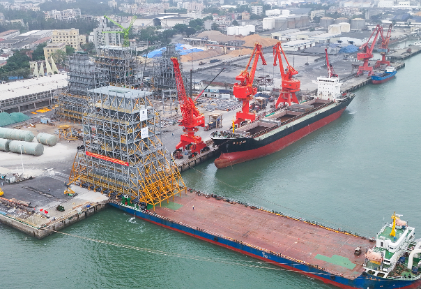 在可行性研究阶段,公司技术团队与物流供应链总部工程物流事业部专家紧密协同,联合客户技术部门反复优化运输方案,论证裂解炉整体模块生产与运输可行性,完成码头堆场承载力评估,科学制定分载配载计划,并对茂名远海码头、惠州美孚重件码头分别开展通航与靠泊技术分析。