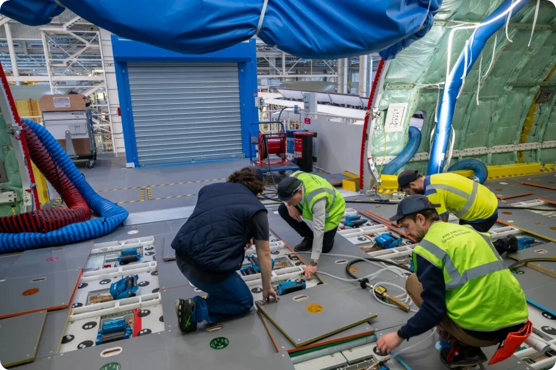Guillaume Terrien负责全新空客A350F的地面测试设计工作。他回忆道:“早在2021年A350F的定义阶段,总装线地面测试设计团队就与总工程团队开启了紧密合作,目标是共享总装线的测试限制,在飞机初步设计阶段就将其考虑在内,以便未来在总装线站位进行地面测试。这种方法被称为‘协同设计’。”