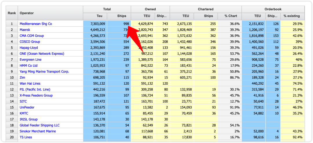 上周,MSC从中国舟山长宏国际造船厂接收了11,480 TEU的“MSC Migsan”号,这艘新船的交付直接将其舰队总数推至1000艘以上。目前,MSC总运力已接近730万TEU,较最接近的竞争对手高出约57%,形成了难以逾越的结构性领先。这种“贪婪”却精准的扩张策略,融合了持续新船订造与二手船收购,充分展现了其通过规模效应锁定网络密度、议价优势和供应链控制权的战略决心。