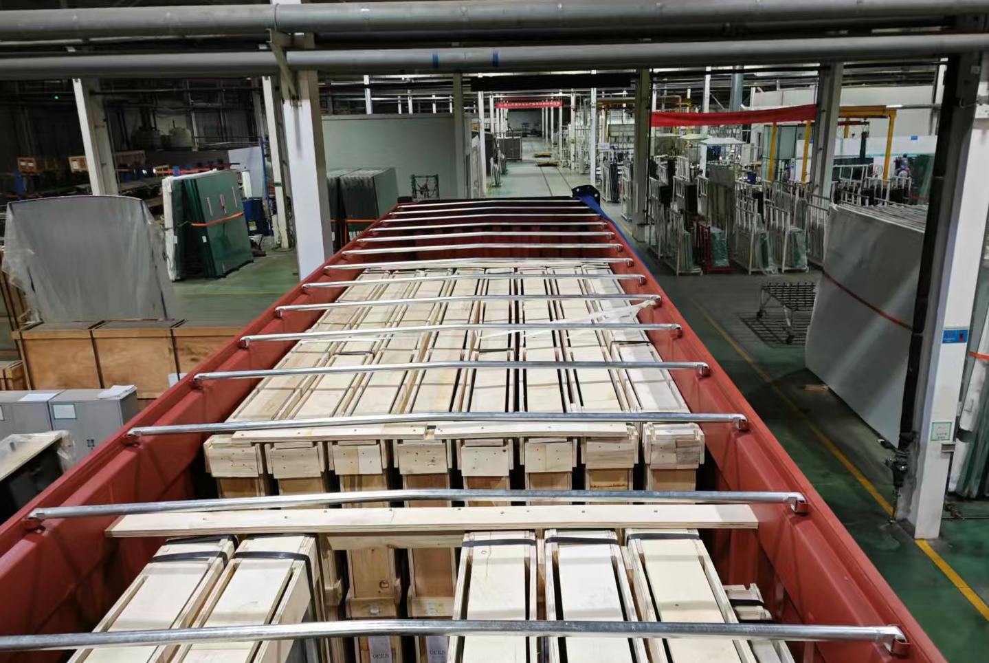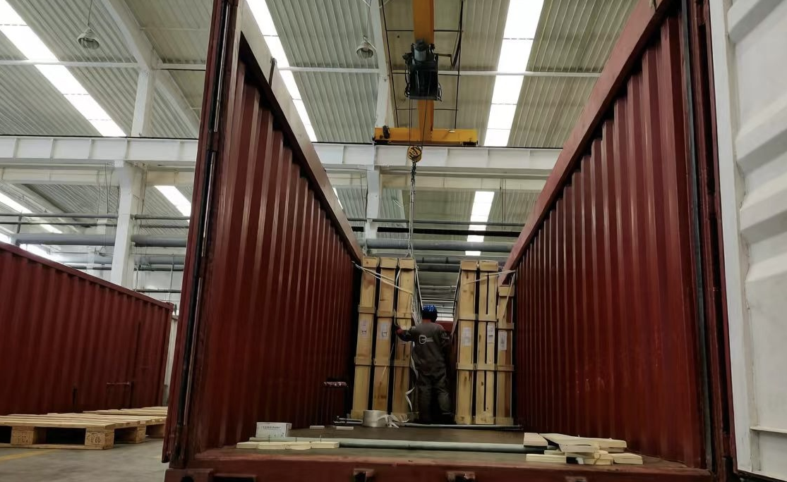 二是装箱要求特殊:单片玻璃长3至5米、宽2.46米,重500至800公斤,每箱装载约15片。此类规格超出常规集装箱装载标准,需使用起重设备配合吊装作业,且箱内需进行多点位加固以防止运输途中移位或倾倒;同时,玻璃板面大、自重大,对装卸过程中的垂直度控制及运输途中的平稳度均提出较高要求。