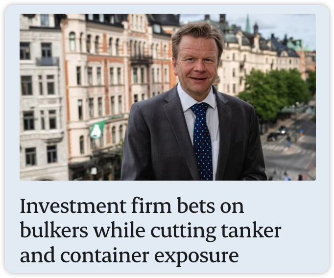 BlueYield的动作堪称教科书级的“避高就低”。今年1至4月,该机构新增投资仅2770万瑞典克朗(约300万美元),却抛售了3440万克朗的股份,净流出资金却精准流向干散货/多用途船和 offshore 板块,同时大幅减持集装箱与油轮项目。CEO Jonas Kamstedt对TradeWinds的表态一针见血:“部分投资已达充分估值,未来风险升高;另一些机会则提供良好回报与均衡风险。”他特别强调,在选定的干散、offshore 和集装箱细分领域,仍存在“对股东而言极具吸引力的价值”。
